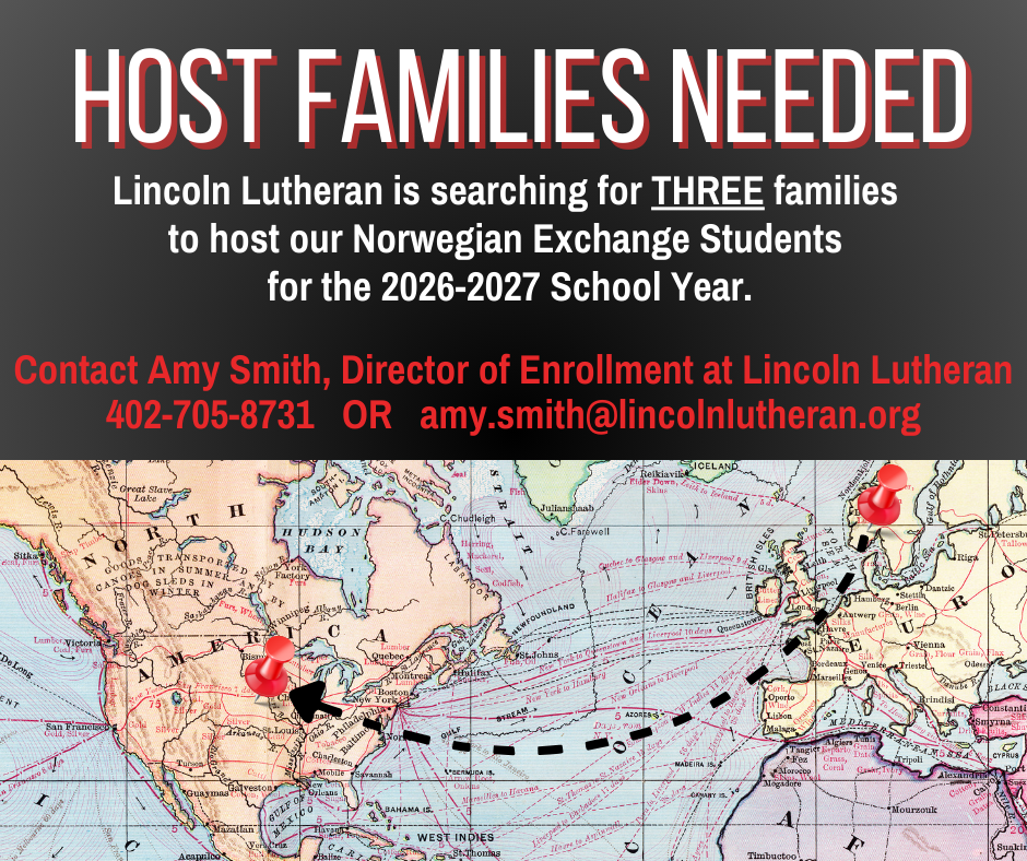Lincoln Lutheran is inviting members of our association churches to consider serving as a host family for one of three Norwegian exchange students for the 2026-2027 school year.