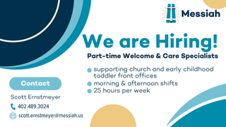 And, as always, we welcome the squirms, noises, and energy that come with children. God put the wiggle in children, don’t feel like you have to suppress it here!